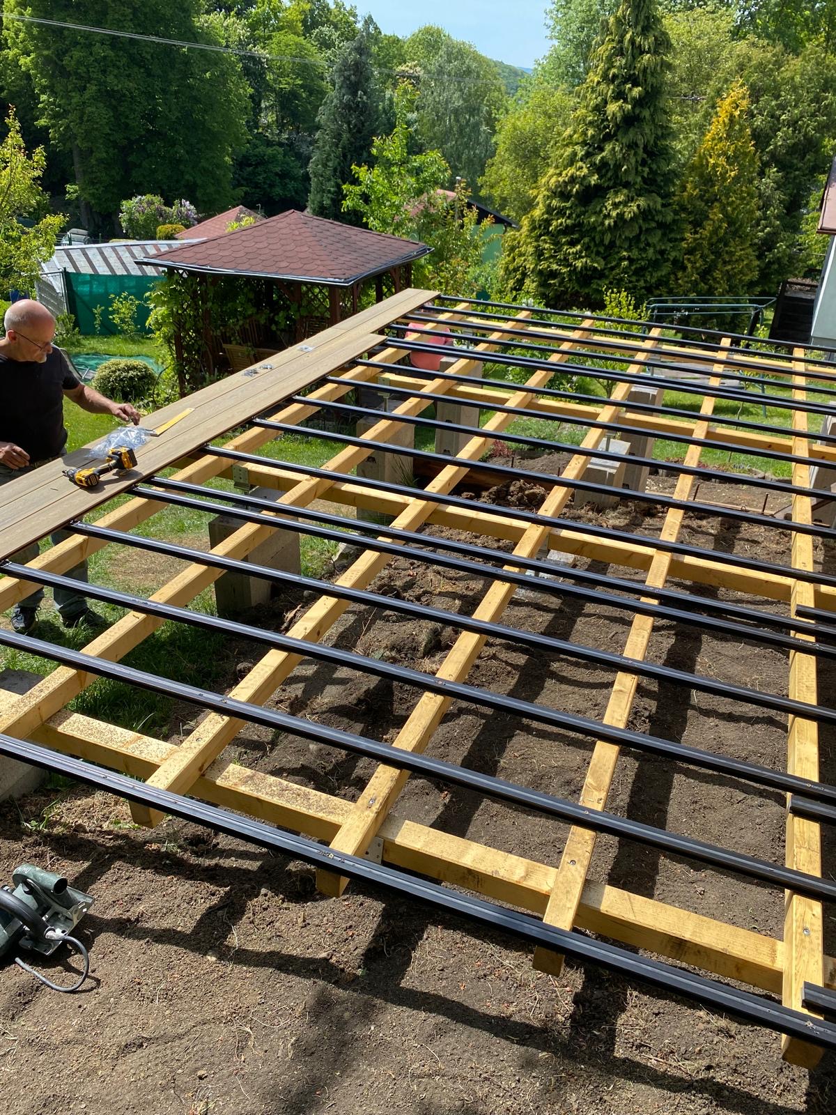 ROZPRACOVANOST TERASY NÁZORNĚ UKAZUJE JAK SE KLIPY VKLÁDAJÍ A KOTVÍ DO HRANOLŮ S NÁSLEDNÝM PŘILOŽENÍM DALŠÍCH ŘAD