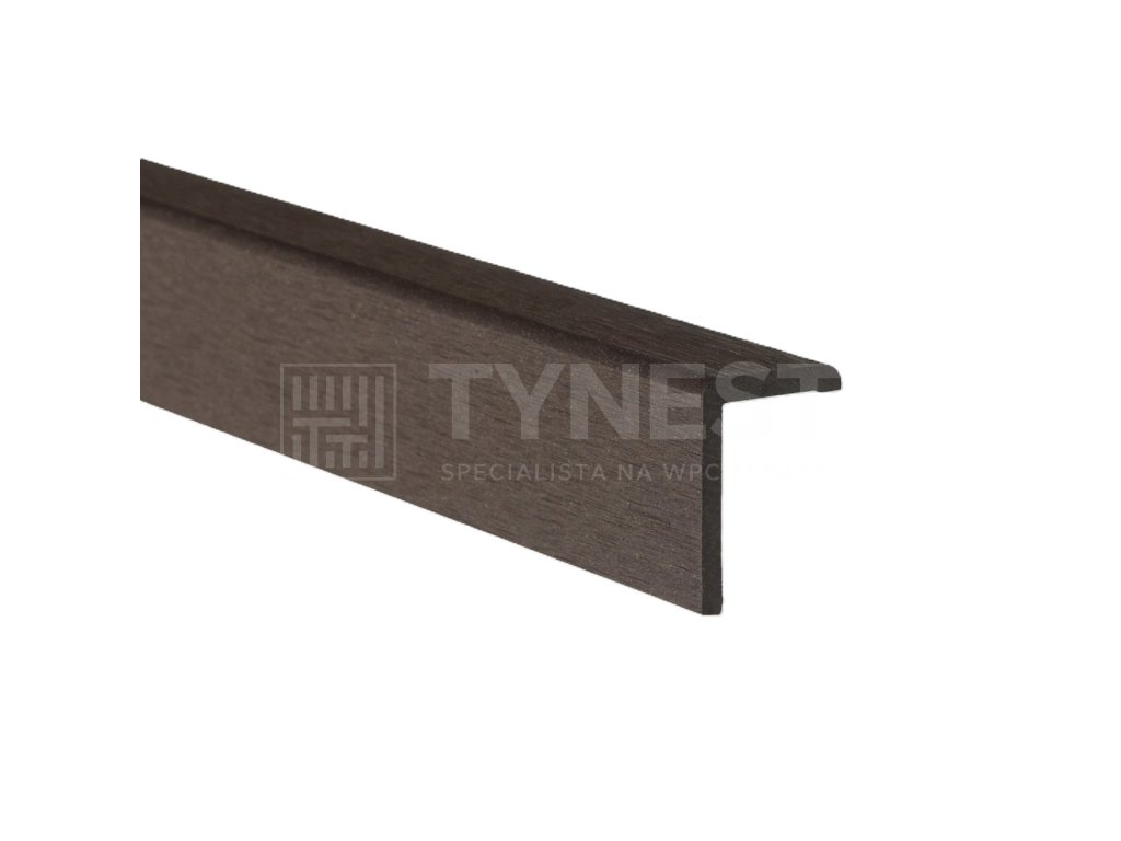 Lišta z materiálu WPC tvaru L slouží jako ukončovací prvek na hranu terasy, ukončení schodů či jako velmi dobrý pomocník na zakrytí ukončení u stěny terasy, která není v pravém úhlu. Při rozbíhavosti terasy či nerovnostni u stěn dokáže lišta zakrýt nerovnost a mezeru až 2 cm.