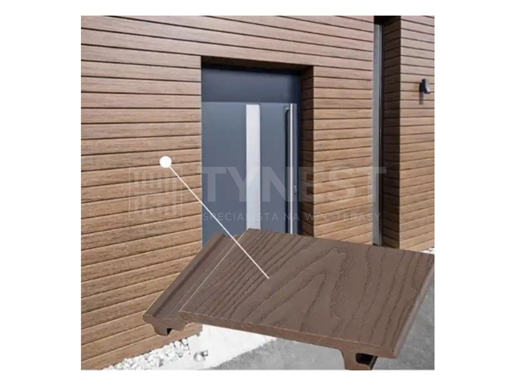 Lehký trvanlivý WPC obklad fasády vhodný do prostředí namáhaného prachem a vzdušnou vlhkostí. Širokého využítí nachází jako obklad štítů a svislých stěn rodinných domů a rekreačních objektů. Používá se jako spodní záklop či podbití verand a přesahů krovu. Nenáročná montáž na podkladní WPC či hliníkové hranoly, které se kotví k podkladu. Osová vzdálenost podkladních hranolů je závislá na tom, zda bude povrch namáhán (zatěžován) či nikoli. Podle toho je osová vzdálenost mezi hranoly 35 až 65 cm. Na 1 m2 obkladu pravidelného tvaru je zapotřebí přibližně 2,6 ks prkna délky 2900 mm. U nepravidelného tvaru obkládané plochy je spotřeba materiálu větší, dána velikostí prořezu. Zámek mezi prkny je hluboký cca 2 cm.