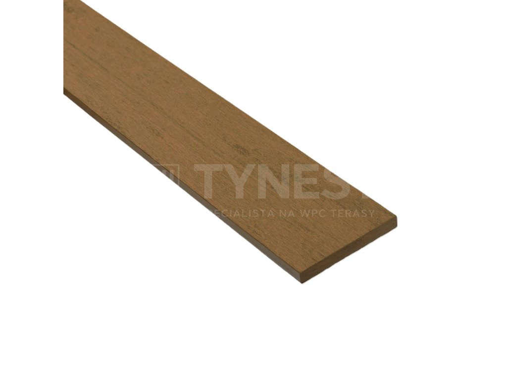 Terasové boční prkno z materiálu WPC, které zajistí, že nebude viditelná z čelního pohledu podkladní konstrukce. Zároveň uzavře terasu proti nechtěnému vniknutí předmětů či malých zvířat. V případě, že čelo terasy je vyšší než 100 či 150 mm, lze použít klasické prkno terasové i ve více řadách nad sebou na podkladní rošt a hrana se ukončí krycí L lištou v barvě terasy.