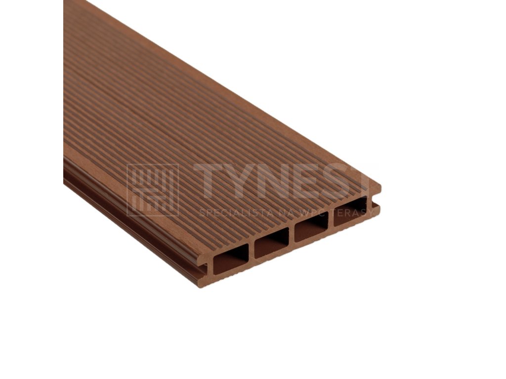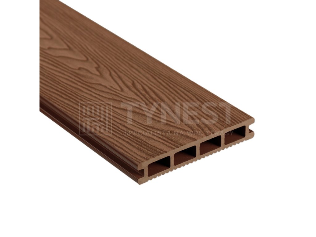 Základní model terasového prkna vhodný na běžně používané a zatěžované terasy. Prkno může zmoknout a oschnout a to opakovaně v mnoha cyklech. Obecně platí, že modely všech výrobců WPC prken, které mají DUTÝ OBDÉLNÍKOVÝ PRŮŘEZ, nejsou vhodné pro použití okolo bazénů či do prostředí s vysokou vlhkostí.